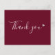 An elegant business thank you postcard featuring a silver heart on a burgundy background. A perfect way to say thank you to your customers and clients. This elegant design is ideal for a wide range of businesses including spas salons hair and makeup stylists boutiques beauticians and florists. Designed by Thisisnotme©