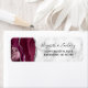 The left-hand edge of this elegant modern wedding invitation return address label features a burgundy watercolor agate border trimmed with silver faux glitter. The customisable text combines black handwriting and copperplate fonts on a grey and white marble background.