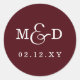 Burgundy Simple Modern Monogram Wedding Classic Round Sticker