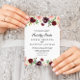 This burgundy spring floral nuestra boda wedding invitation is perfect for a modern wedding. The hand-painted design features green leaves, dazzling pink, blush, purple, red, white and burgundy dazzling roses, peonies neatly arranged in small cute bouquets.