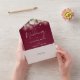 All in one burgundy wedding invitation featuring pretty string lights, floral greenery and elegant typography. The invitation includes a perforated RSVP card that can be individually addressed or left blank for you to handwrite your guest's address details. Designed by Thisisnotme©