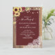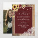 Burgundy Sunflower Wood Script Lace Photo Wedding Invitation