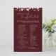 Add fun and laughter to the bridal shower with this Sweet Love Candy Match game card. Featuring an elegant burgundy floral design, guests match wedding-related terms with popular candy names. This interactive bridal shower game is perfect for weddings, engagement parties, and bachelorette celebrations. Easy to play and suitable for all ages, it’s a delightful icebreaker that keeps guests entertained. Answer key included, making it convenient for hosts to score and announce winners. Ideal for modern, romantic, and floral-themed bridal showers.