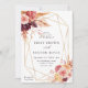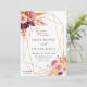 This wedding invitation features rustic watercolor flowers in terracotta, burgundy, burnt orange, yellow, blush with beige and brown pampas grass, and a gold geometric frame. For more advanced customisation of this design, please click the "customise further" link. Matching items are also available.