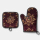 Burgundy Velvet Peony Gold Embroidery Floral Oven Mitt & Pot Holder Set