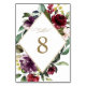 Burgundy Violet Flowers & Gold Frame Wedding Table Number