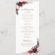 Burgundy watercolor floral boho wedding program menu