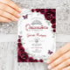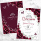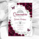 Burgundy, silver and white Quinceanera celebration invitation. Features, script font, butterflies, watercolor roses and tiara. Perfect for an elegant princess style glam celebration. Personalise with your own details. Printed Zazzle invitations or instant download digital printable template.