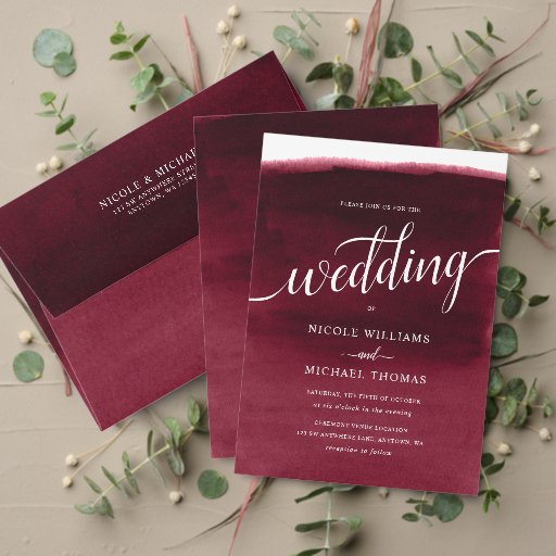 Burgundy Watercolor Wedding SuiteDesigned by Print Creek Studio Inc