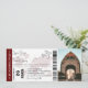 Burgundy destination wedding invitation boarding pass wedding ticket, a portrait of the engaged couple, a plane with a loop trail, and an easy customisable this invitation design. Remember to keep the text on the back of the monogram up to current.