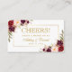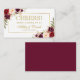 Watercolor Floral Burgundy and Gold Wedding Reception Drink Ticket Card - Burgundy Back - Gold Script
