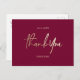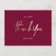 Thank You Custom burgundy cherry wine red Weddings Card with no photos. Wedding Thank You Cards, Elegant Modern Calligraphy Script text Postcards in faux bronze metallic foil.