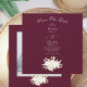 This Save the Date Announcement has a burgundy background with a gold and white bold floral. It is simply elegant! Personalise it with your favourite photograph on the back accented with gold and white roses