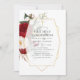 Rustic boho burgundy red (marsala) and white peonies herbarium first holy communion invite with gold geometric frame designed to be quickly and easily customised to your event specifics.
