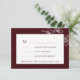 White line art cherry blossoms on a deep burgundy background. Elegant wedding RSVP card. Botanical hand drawn design.