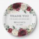 Burgundy White Floral Rose Wedding Shower Birthday Paper Plate