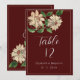 Elegant vintage style white, burgundy, gold, and green floral botanical Wedding Table Numbers Invitation is perfect for couples looking for a romantic and simple touch to their big day. This country chic botanic flower frame surrounds your wedding details. Give your guests a wonderful first glimpse of your wedding to come this invitation will be a fantastic addition to your wedding events.