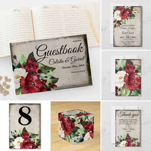 Elegant Red Floral Grunge Wedding StationeryDesigned by Amazing Beautiful Creative Designs