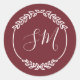 Burgundy White Leaf Wreath Monogram Wedding Classic Round Sticker