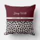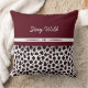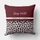 Embrace your wild side with this striking throw pillow featuring a bold leopard print in shades of black and white, accented with rich burgundy spots. The top portion of the pillow is solid burgundy, elegantly inscribed with "Stay Wild" in a flowing script, set above a sophisticated white horizontal stripe. Perfect for adding a touch of untamed elegance and comfort to your living room, bedroom, or any space that needs a pop of personality. Crafted from soft, durable fabric, this pillow is designed for both style and relaxation.