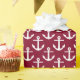 Burgundy White Nautical Anchors Pattern Wrapping Paper
