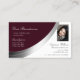 Burgundy White Silver Decor with Monogram & Photo Business Card