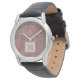 Antique effect burgundy background decorated with purple grapevines on sophisticated, monogrammed leather watch.