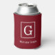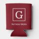 Burgundy Wine White Framed Initial Monogram Can Cooler