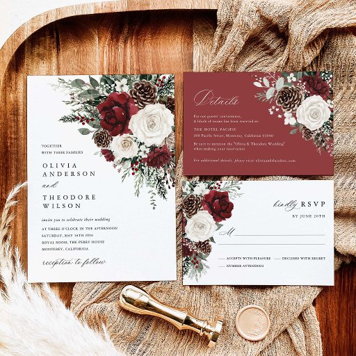 Burgundy Winter Floral Watercolor Wedding SuiteDesigned by K Lily