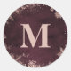 Burgundy with Rose Gold Winter Wedding monogram Classic Round Sticker