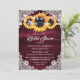 Burgundy Wood and Lace Sunflower Bridal Shower Invitation