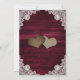 Beautiful burgundy rustic bridal shower invitations featuring wood and lace background adorned with sunflowers and string lights. Matching items available.