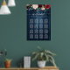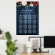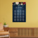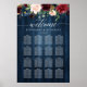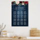 This is a beautiful product featuring hand letter wedding seating chart in black and burgundy greenery design and wood blue background.