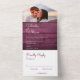 Burgundy Wood String Lights Photo Wedding All In One Invitation