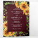 Burgundy Wood Sunflower Photo Arch QR Code Wedding Tri-Fold Invitation