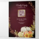 Burgundy Wood Sunflower Pumpkin QR Code Wedding Tri-Fold Invitation