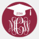 Burgundy Wt Vine Script Monogram Graduation DIY BG Classic Round Sticker