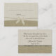The rustic look of Burlap accented with a vintage white bow. Personalise with your own special message on back of seating card, or remove message and just add names and date.