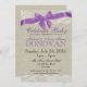 Purple Bow, white lace and burlap printed design, offers sweet printed look for a vintage country baby shower. All parts of this invitation are printed. There is no real bow, ribbon, lace or burlap attached.
