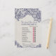 This burlap and navy lace "he said she said" game is perfect for a country chic theme bridal shower. The front of the game card features "he said she said" which is a fun quiz about the bride and groom. The back of the card features a word find with wedding related words and phrases. The design features lovely delicate blue lace flowers on a cream white burlap background and a feminine modern calligraphy font. Personalise the game card with the brides name and bridal shower date.