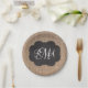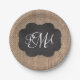 Burlap Chalkboard Look Triple Monogrammed Script Paper Plate