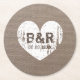 Burlap country chic heart paper plates for wedding party. Vintage personalised monogram design with rustic background texture and romantic weathered love symbol. Personalizable with monogrammed name initials of bride and groom plus date of marriage. Stylish and trendy disposable dinner plates for wedding, bridal shower, i do bbq, engagement, anniversary, bachelorette and more. Cute supplies for DIY style theme and outdoor backyard garden and barn parties. Available in small and large size. Custom party supplies.