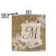 Burlap Country Lace Appliqu Monogram Whiskey Flask