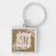 Burlap Country Lace Applique Rustic Fabric Print Pattern Monogram Initial Key Chain