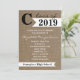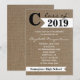 This graduation 2015 party invitation was created on a tan burlap look background with a large "C" to the left of a white banner with the graduation year and the words "lass of" above the banner. A smaller white banner appears along the bottom where you can place the name of your school. The words "Please join us in celebrating the graduation of" appear below the top banner and there is a place for you to personalise the design with the name of your graduate and all the graduation party invitation details. The reverse side of the invitation also has the burlap look to make a great modern and trendy design for your graduation party invitations. Copyright henishouseofpaper
