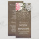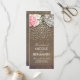 Rustic country wedding programs with burlap, lace, pink flowers and gold confetti dots