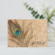 A rustic burlap and peacock feather RSVP response card. Easily personalise with your event details. Designs are flat printed graphics -- NOT ACTUAL BURLAP OR FEATHER.