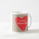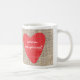 Burlap Red Stamp Heart Valentine Coffee Mug Cup. Customise with or without text.