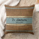 Burlap Rustic Brown Sage Green Custom Family Name Cushion