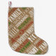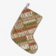 This rustic modern Christmas stocking features a burlap look background with a dynamic graphic typography of the various adjectives describing the winter season. The perfect addition to your fireplace mantle.